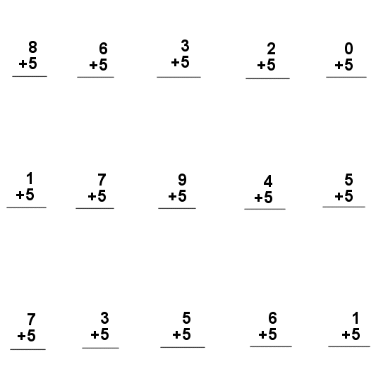 Math and Numbers - Addition Exercise - Five Write the sum. Time yourself __________________ |
