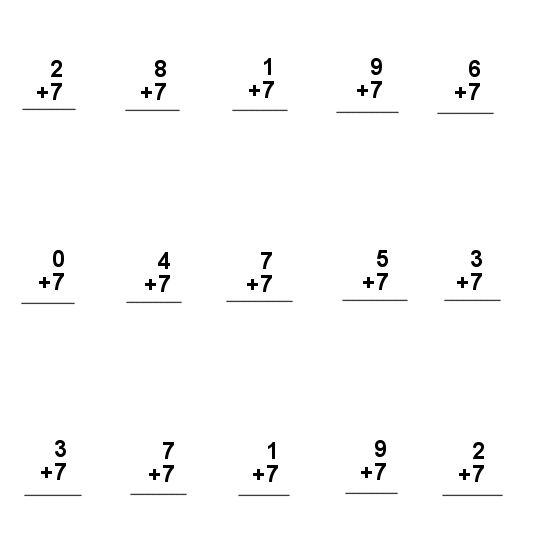 Math and Numbers - Addition Exercise - Seven Write the sum. Time yourself __________________ |