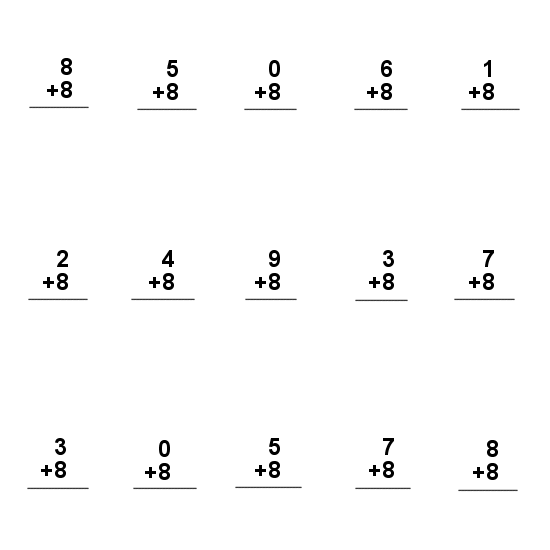 Math and Numbers - Addition Exercise - Eight Write the sum. Time yourself __________________ |