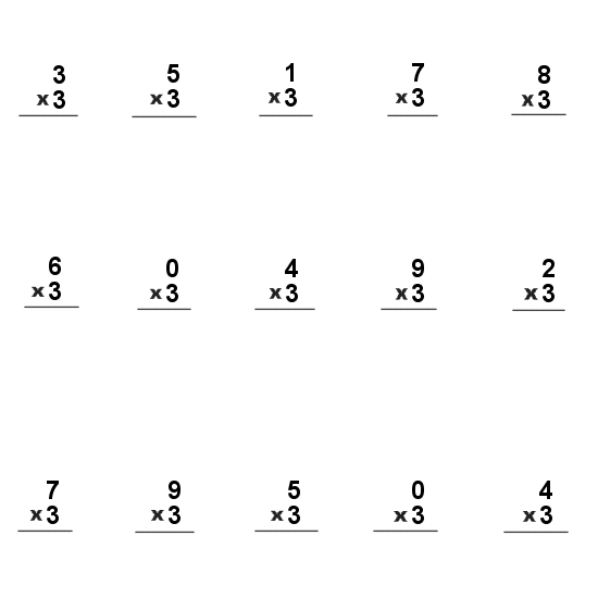 Math and Numbers - Multiplication Exercise - Three Write the product. Time yourself __________________ |